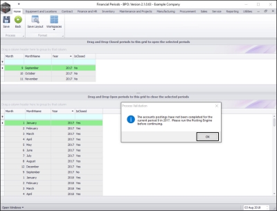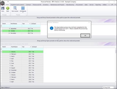 - Click on OK, apply the message instructions then repeat the drag and drop process to close the financial period.