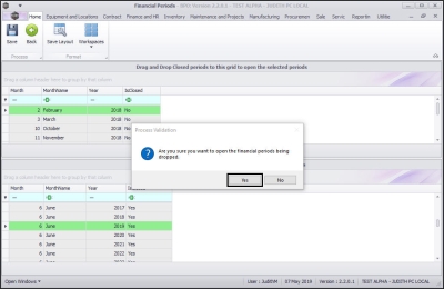 - Are you sure you want to open the financial periods being dropped?