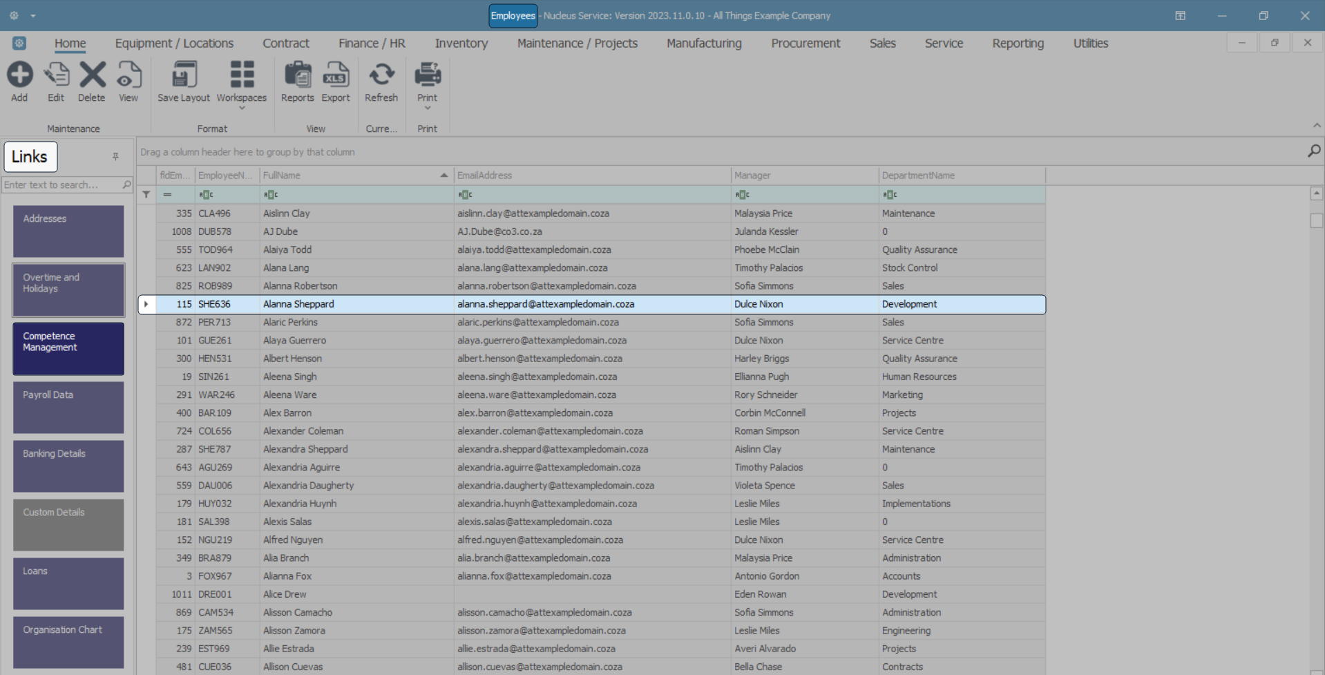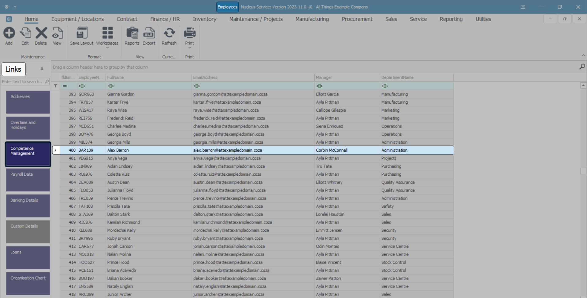 - Select the row of the employee whose Competence Management details you wish to edit.