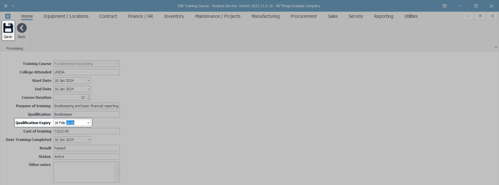 - Qualification Expiry: Either type in or click on the drop-down arrow and use the calendar function to select the course qualification expiry date.