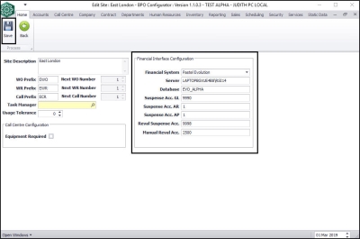 - Database: Type in the Pastel Evolution database name e.g. EVO_TEST_PROD.