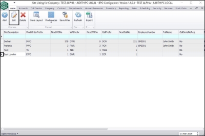 | Ribbon Access: Configurator > Company > Sites |