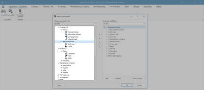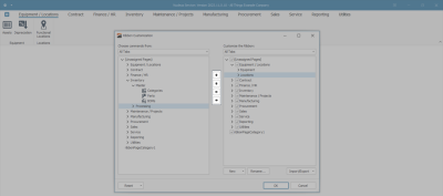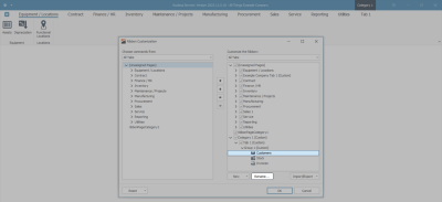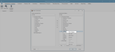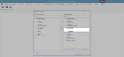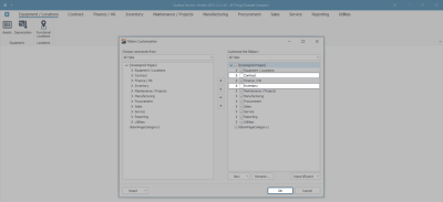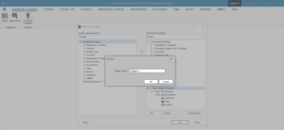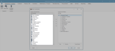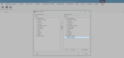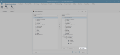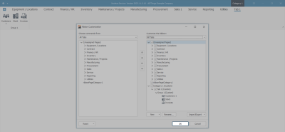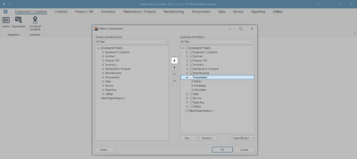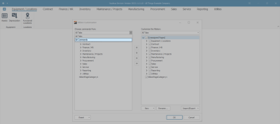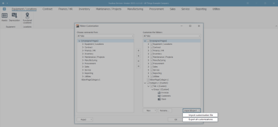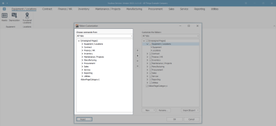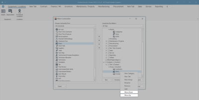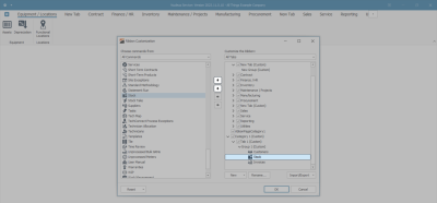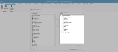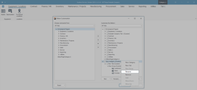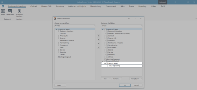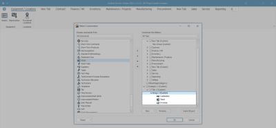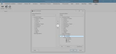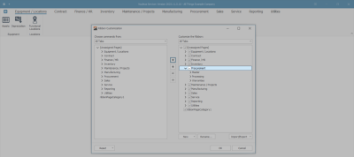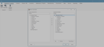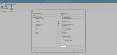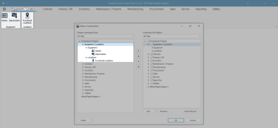 - You will see that this is a list reflection of your Equipment and Locations Ribbon Tab and its Commands as currently displayed in the Ribbon.