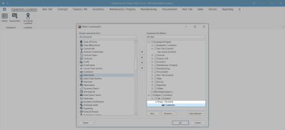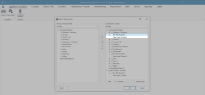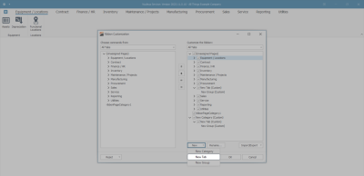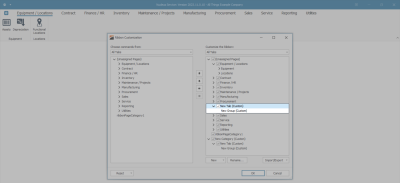 - In this image, the New Tab (and New Group) were added below the highlighted Equipment and Location Tab.