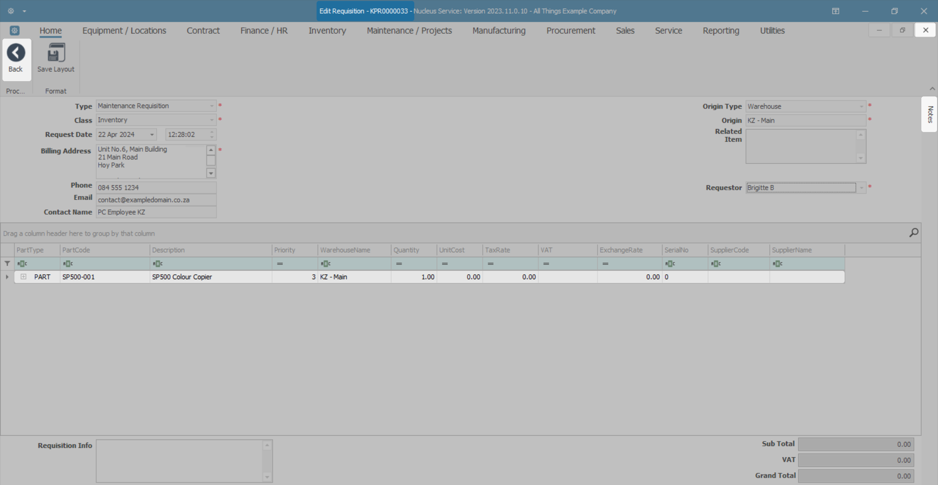 - The Edit Requisition screen will open.
