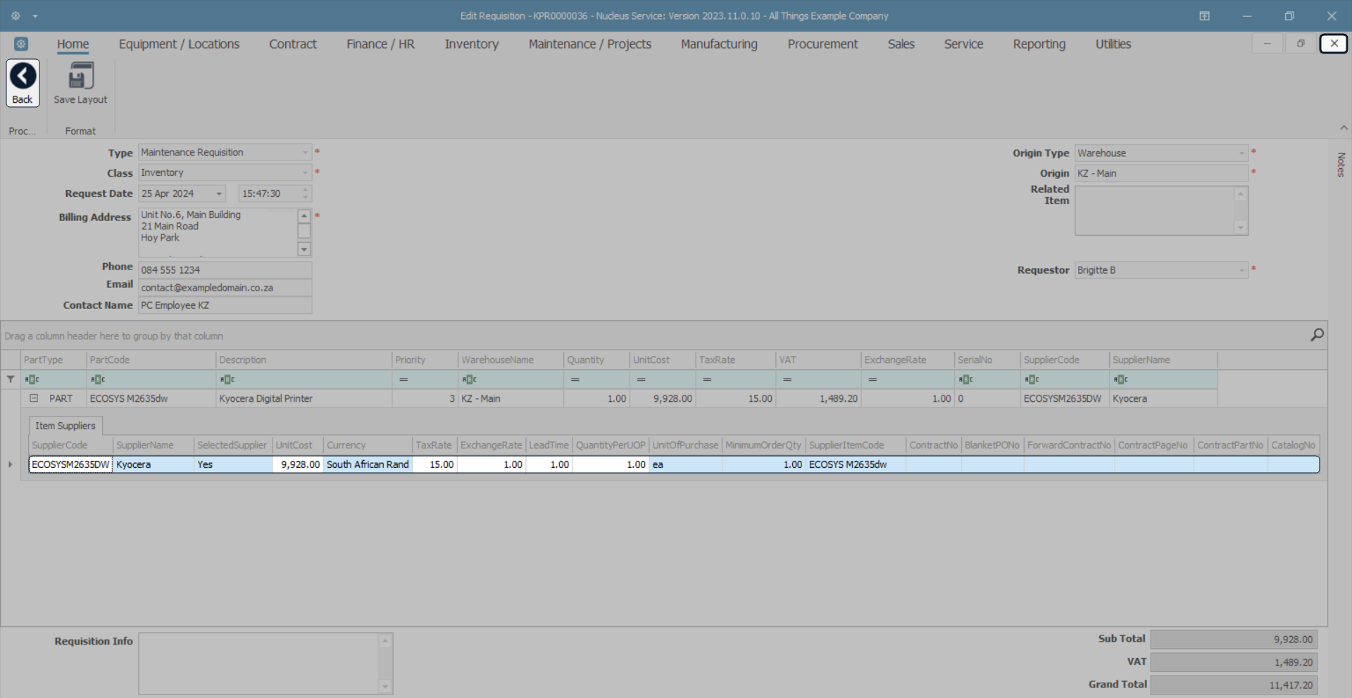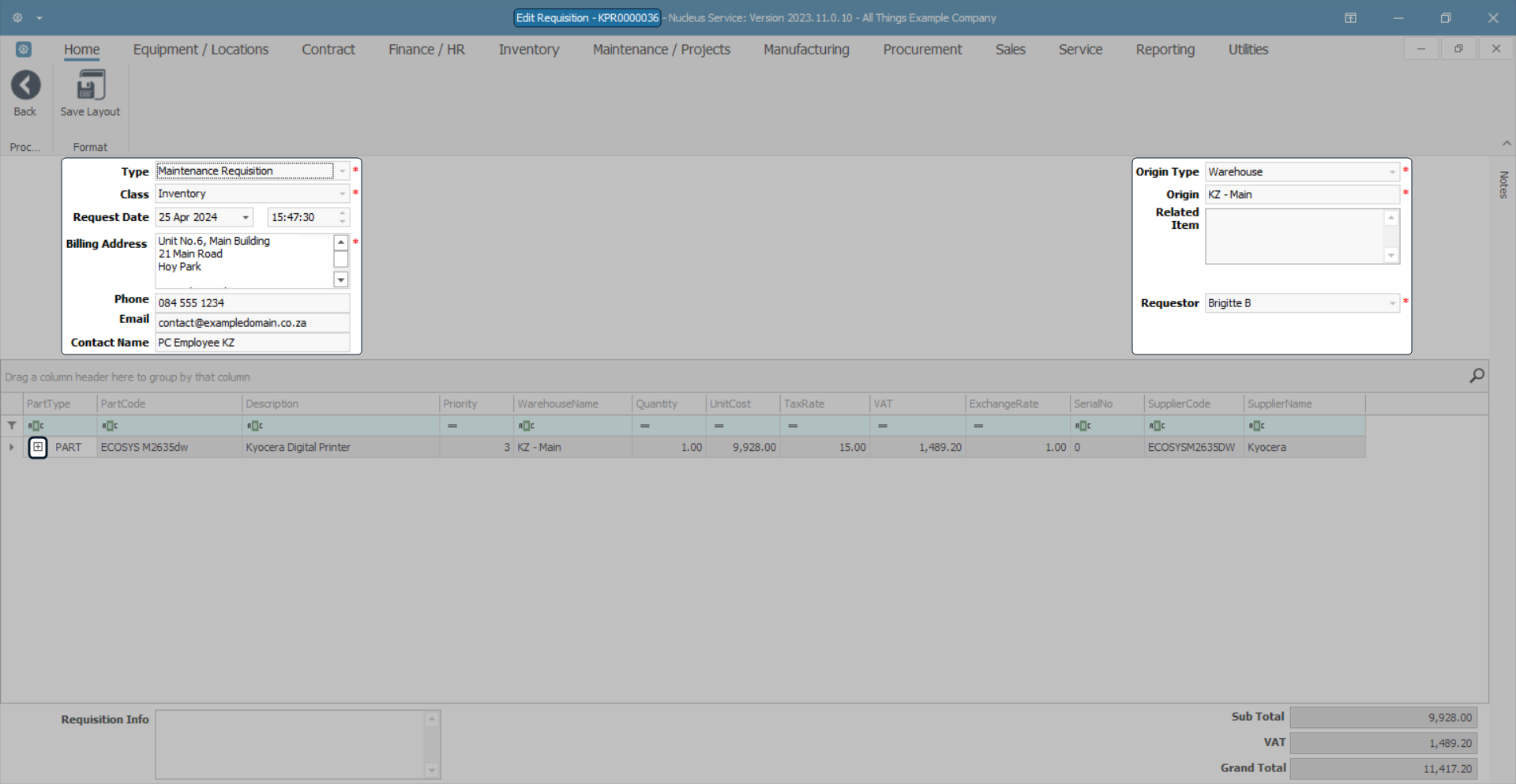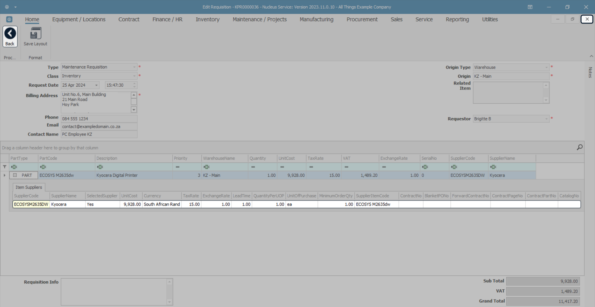 - Here you can view the requisition header details and part details.