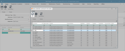 - With the selection made in the previous step, the Destination Warehouse Name column in the parts data grid will also populate with the selection made.