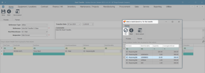 - The Quantity field will now populate with 1, (only one A or B-Class item can be selected at a time), and the Average Unit Cost field will now populate according to the cost of the selected serial no.