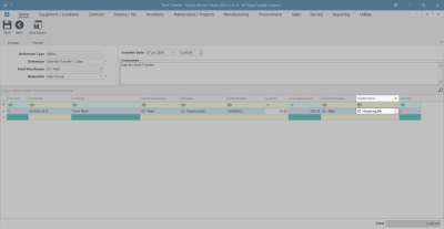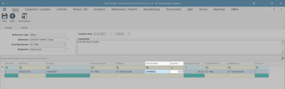 This process enables you to transfer stock from and to any bin in a selected warehouse.