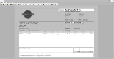 - From here you can View, Print, Export or Email the Part Transfer Note.
