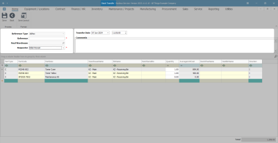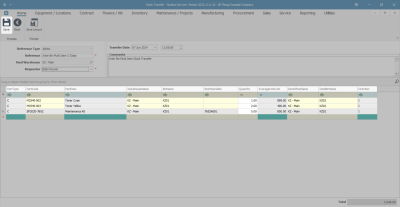 - Follow the same process as for the Single Item Line Stock Transfer to complete the details for each item line in the Stock Transfer screen.