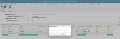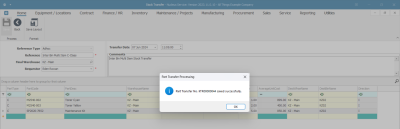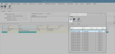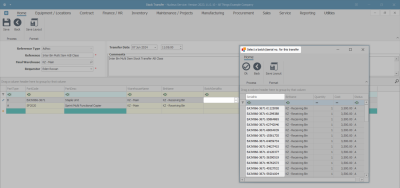 - You will note that the selected serial numbers are recorded on the note and that the items are being transferred: