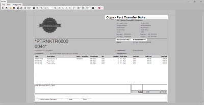 - In this image you can see that all the item lines have pulled through to the Part Transfer Note.