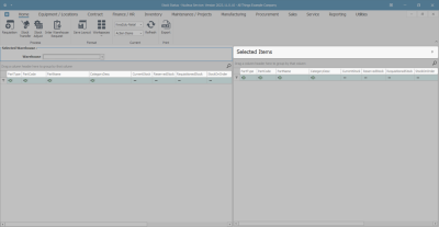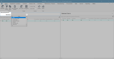 Note: You will see that this Selected Items panel contains exactly the same column details as the Selected Warehouse panel.