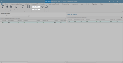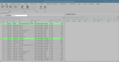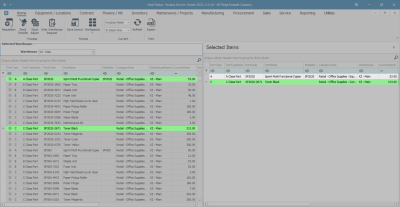 - The Selected Warehouse frame will populate with all the items currently in stock in that warehouse.