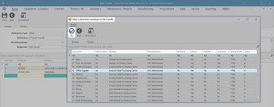 - Click on the row selector in front of the warehouse that you wish to be the final destination warehouse. This is the warehouse that will receive the items from the In-Transit Warehouse.