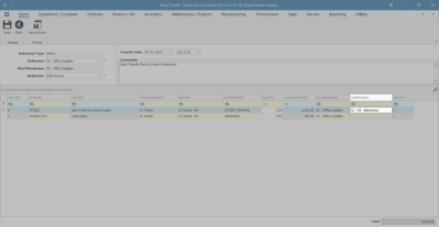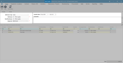 - The Stock Transfer screen will be displayed.