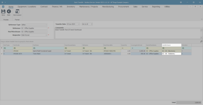 - If there is more than one warehouse bin linked to the destination warehouse then the system will leave this field(s) blank for you to select the bin.