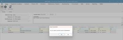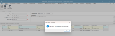 - An Inventory - Part Transfer message box will pop up asking;