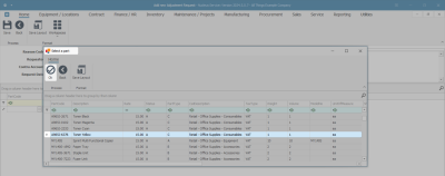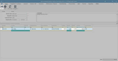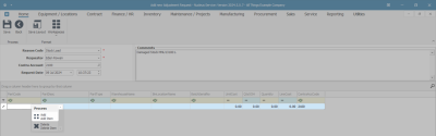 - In the Parts / Items frame, right click anywhere in a row of this data grid. (As you click in this field, the Contra Account Code text box will populate with the previously selected Contra Account Code.)
