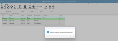 - An Adjustment Request Processing message box will pop up informing you that -