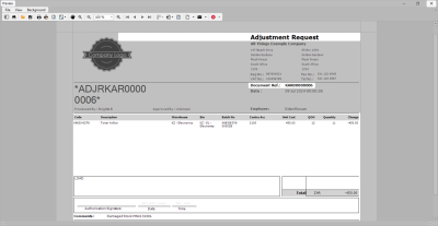 - You can then view the Adjustment Request report preview screen