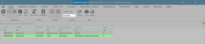 The Inventory Adjustment screen gives you the ability to Print, Authorise, Reject a Stock Adjustment.