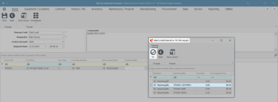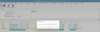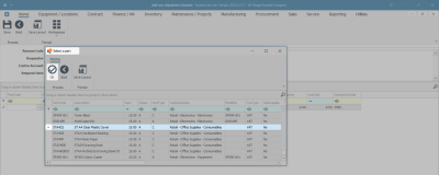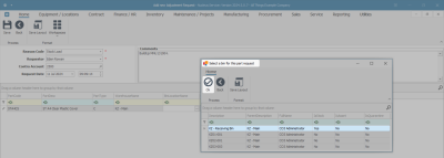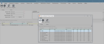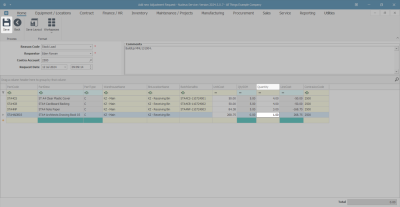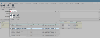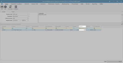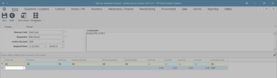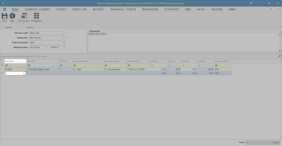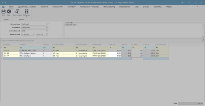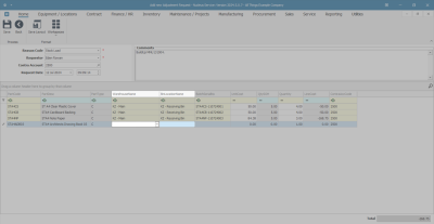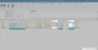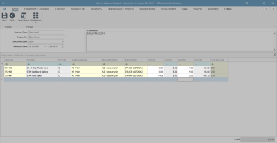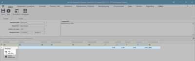 - In the Parts / Items frame, right click anywhere in a row of this data grid. (As you click in this field, the Contra Account Code text box will populate with the previously selected Contra Account Code made in the Adjustment Request Details frame. (This can be changed per item line).