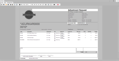 Important Note: This request must be authorised before the stock adjustment is complete.