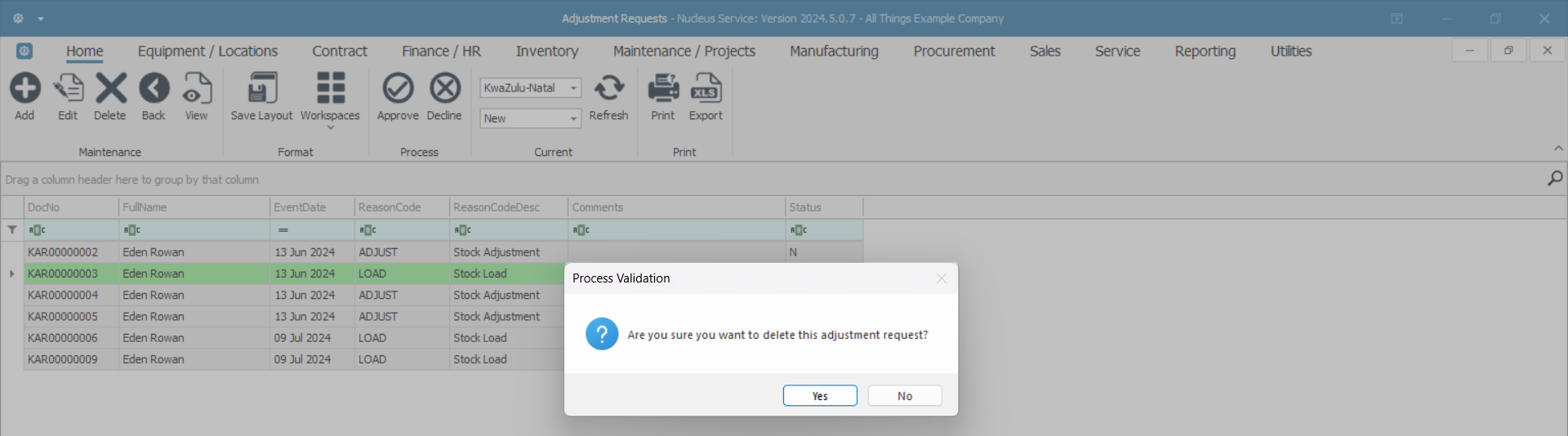 - Are you sure you want to delete this adjustment request?