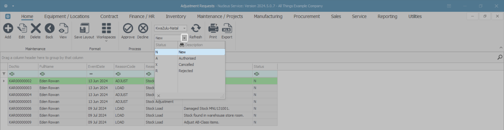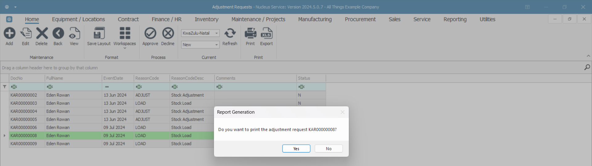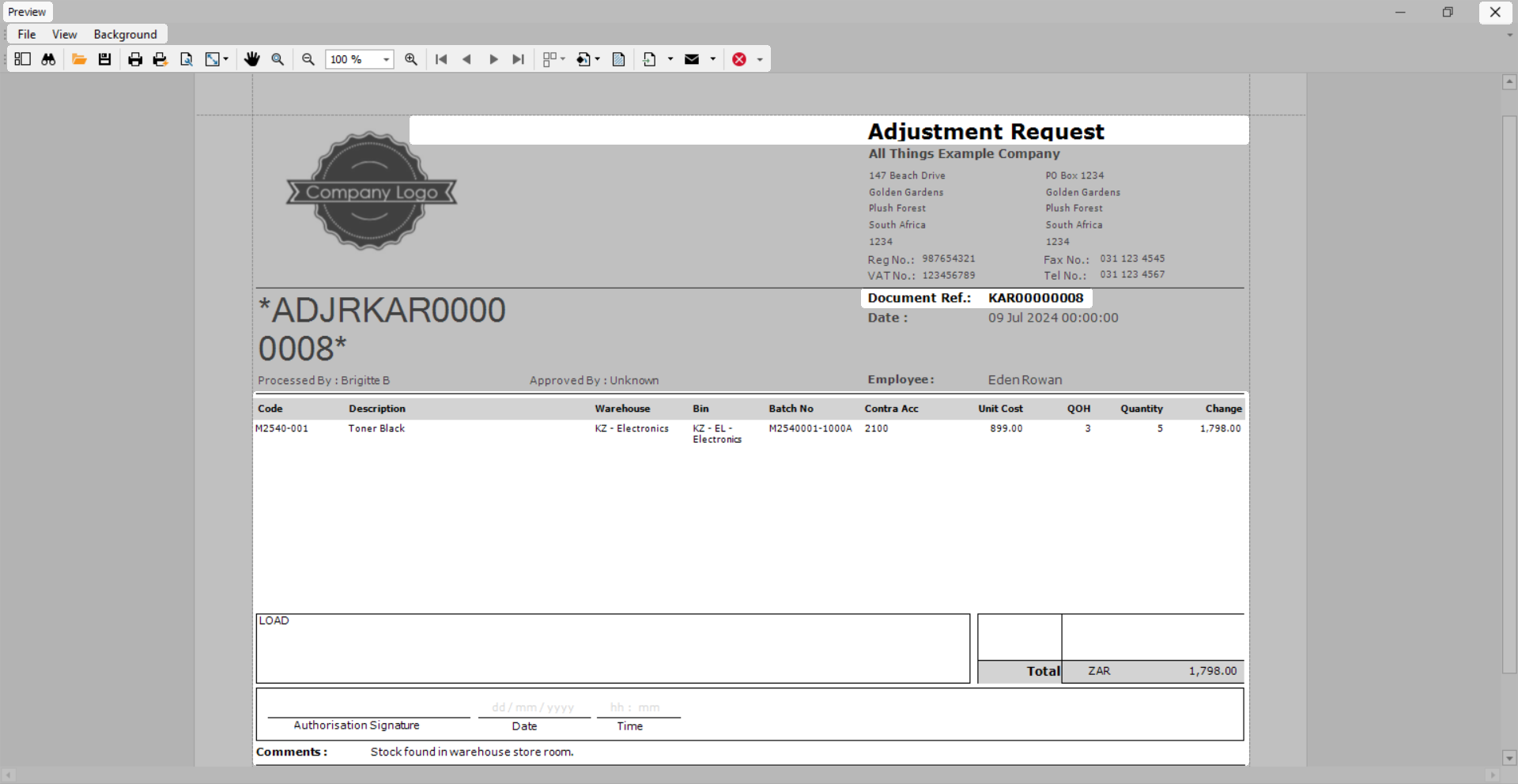 Note: Adjustment requests can only be printed in the New and Authorised status.