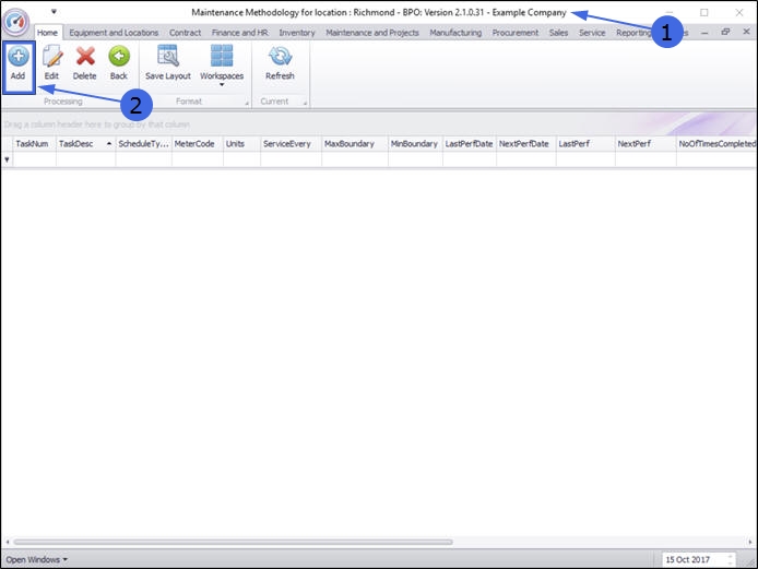 - You can now view the new Maintenance Task in the Maintenance Methodology for location: [] screen.