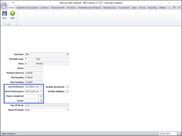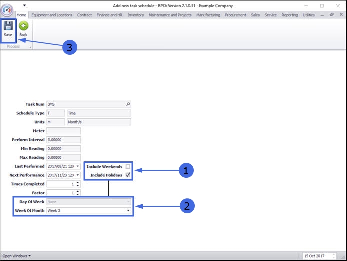 - Note that this task can currently be performed on weekends and public holidays. This will be edited in the next screen.