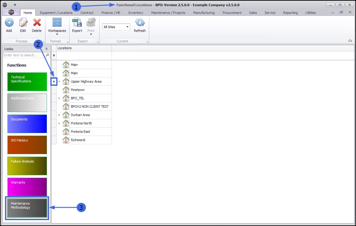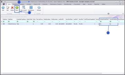 - If the Maintenance Methodology is to be linked to a main location, select the row of that main location. In this example, Upper Highway Area is a main location.