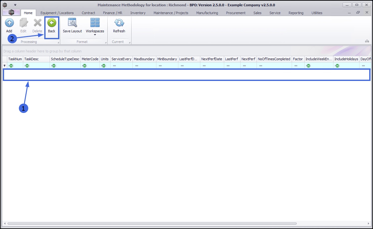 - Select the row of the location where you wish to link Maintenance Tasks.