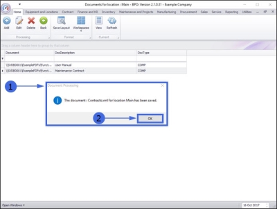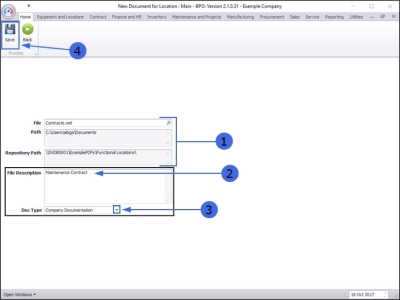 - If the documents are to be linked to a main location, select the row of that main location. In this example Upper Highway Area is a main location.
