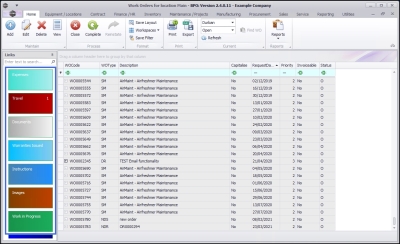 - Parts: Click here to be directed to the Part Requests for WO Code screen, where you can add, edit, delete raise a requisition for a part linked to the selected work order. From here you can also, issue a part, view add a note to a part, change the warehouse of a part, remap a part and view the Purchase orders linked to a selected part.