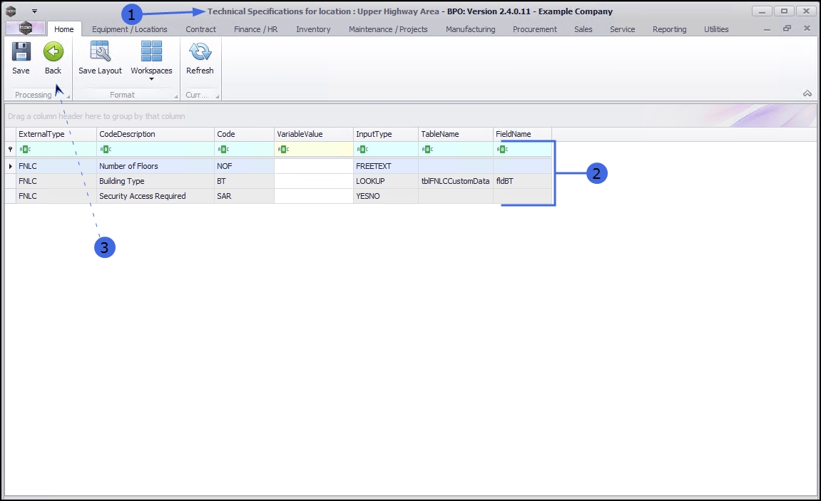 - Click on Back to return to the Functional Locations screen.