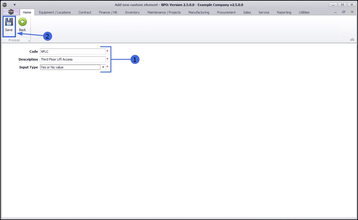 - Description: Type in a description for the code in the previous field e.g. number of floors, cable access.