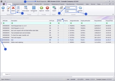 | Ribbon Access: Maintenance / Projects > Work Requests |