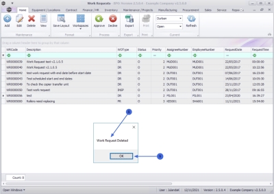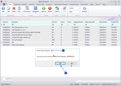 - Are you sure you want to delete Work Request: WR[work request number]?
