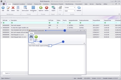 | Ribbon Access: Maintenance / Projects > Work Requests |