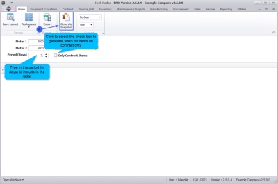 - Specifying 7 as the period will display all inspections that are currently due, including items due 7 days from the current date.