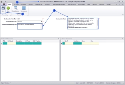 Instructions are 'Work Instructions' to the person performing the required work. One (or more) Instruction(s) are linked to Tasks.