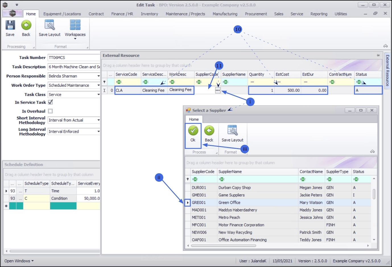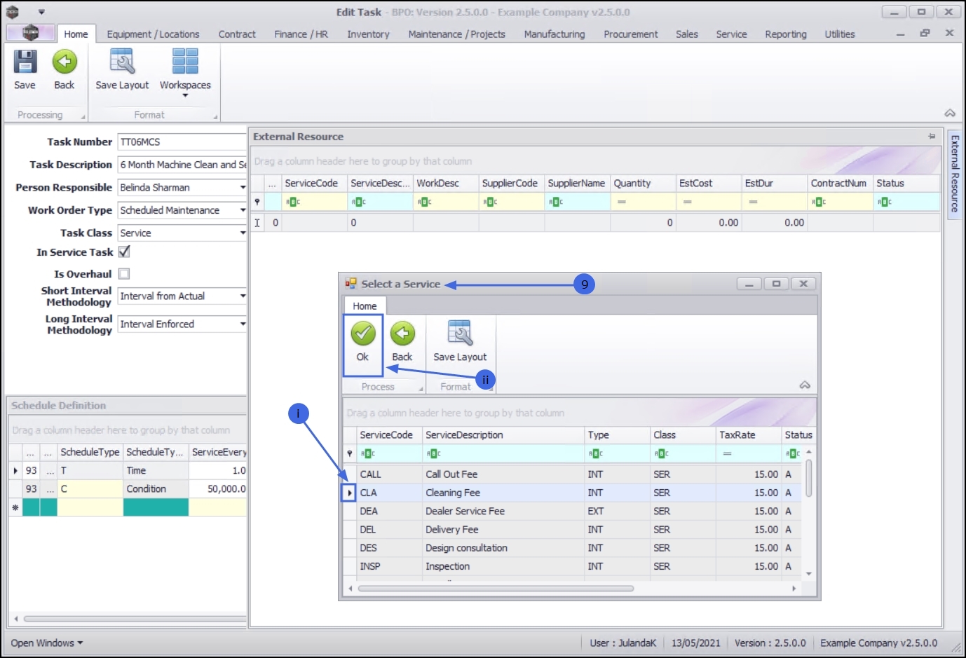 - Click on the row of the task you wish to assign an External Labour Resource to.