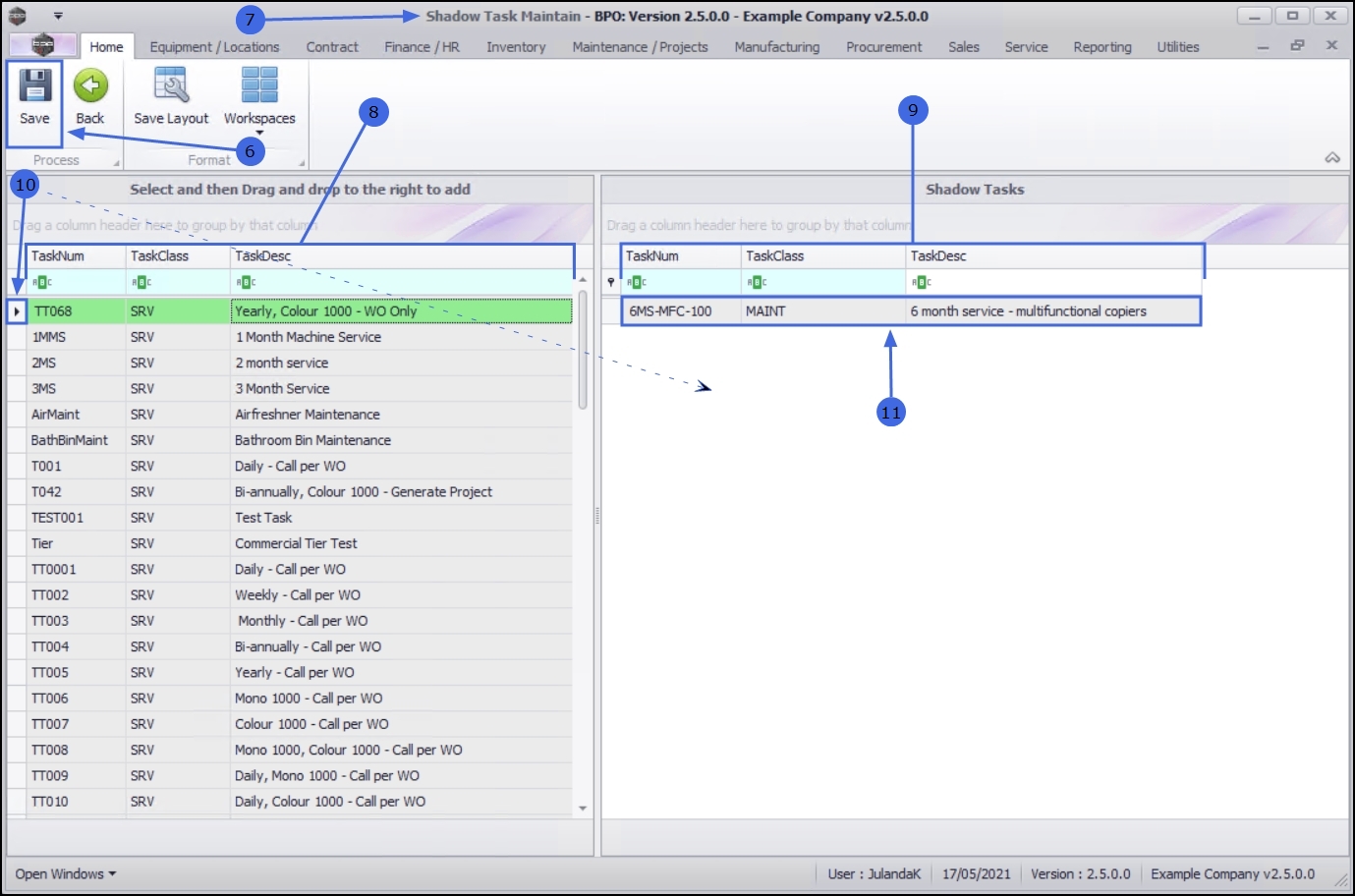Note that you can remove a task item from the Shadow Task grid, by dragging and dropping the task back to the task list column, if it is not required.