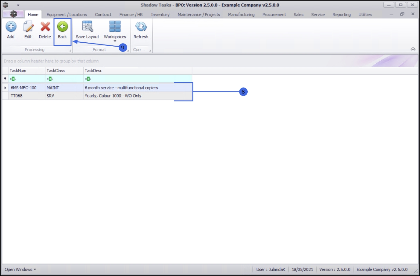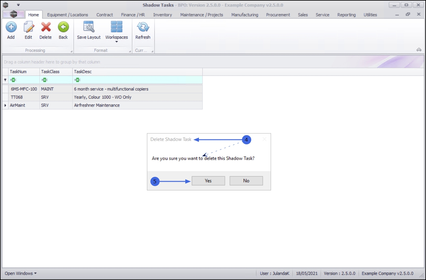 - The Shadow Tasks screen will be updated and the Shadow Task you have removed will no longer be visible in the task data grid.