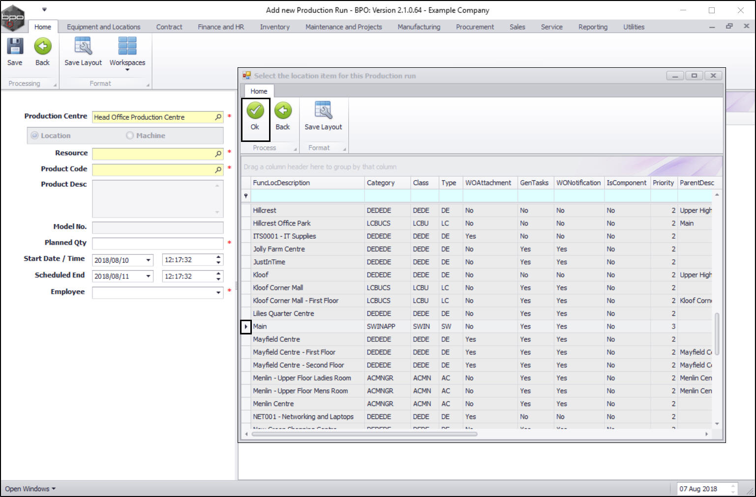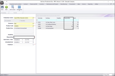 - Here you can see that the system has linked work orders to this production run in order for the work to be carried out.