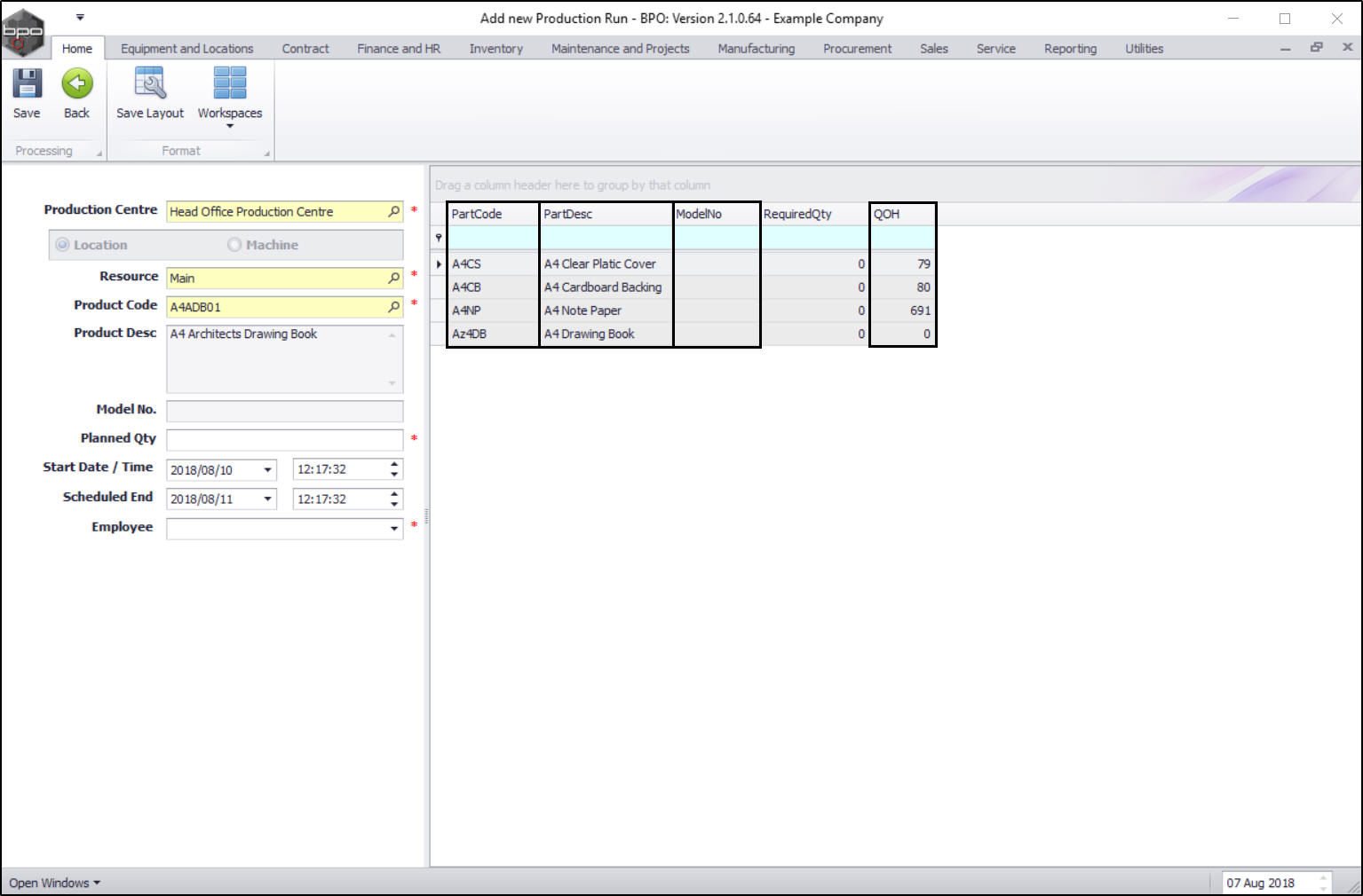 - Note: It is important to compare the QOH and Required Quantity column to see if you have enough stock on hand to fulfill the required quantity needed to complete the production run. If not, then you can complete the procure parts process if necessary.