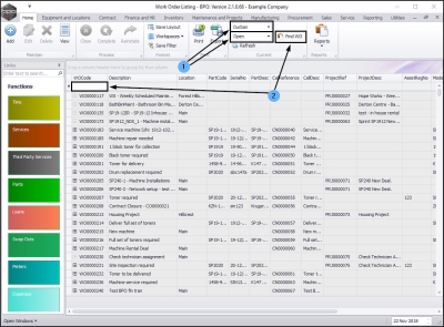 - Now navigate via the Service tab, to the Work Order listing screen.